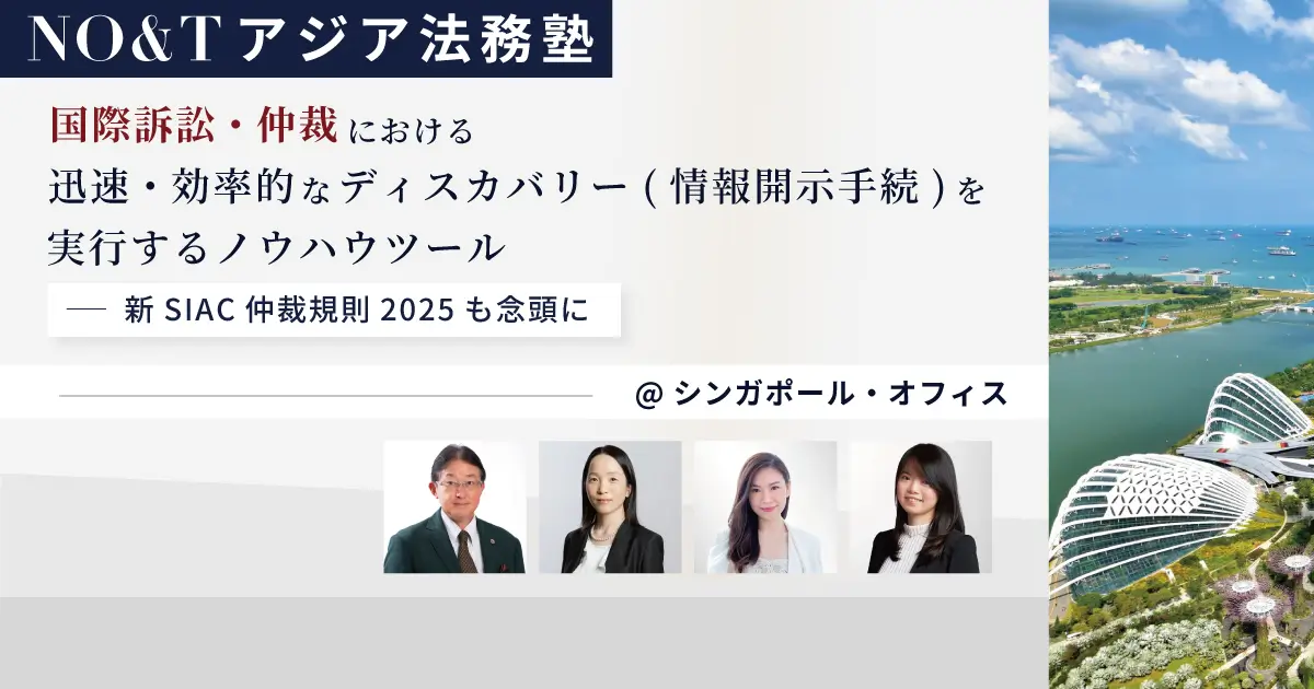 February 25, 2025 (Tue) 15:00 - 17:00Tools for achieving prompt and efficient document disclosure in international arbitration – With the new SIAC Rules 2025 in mind –