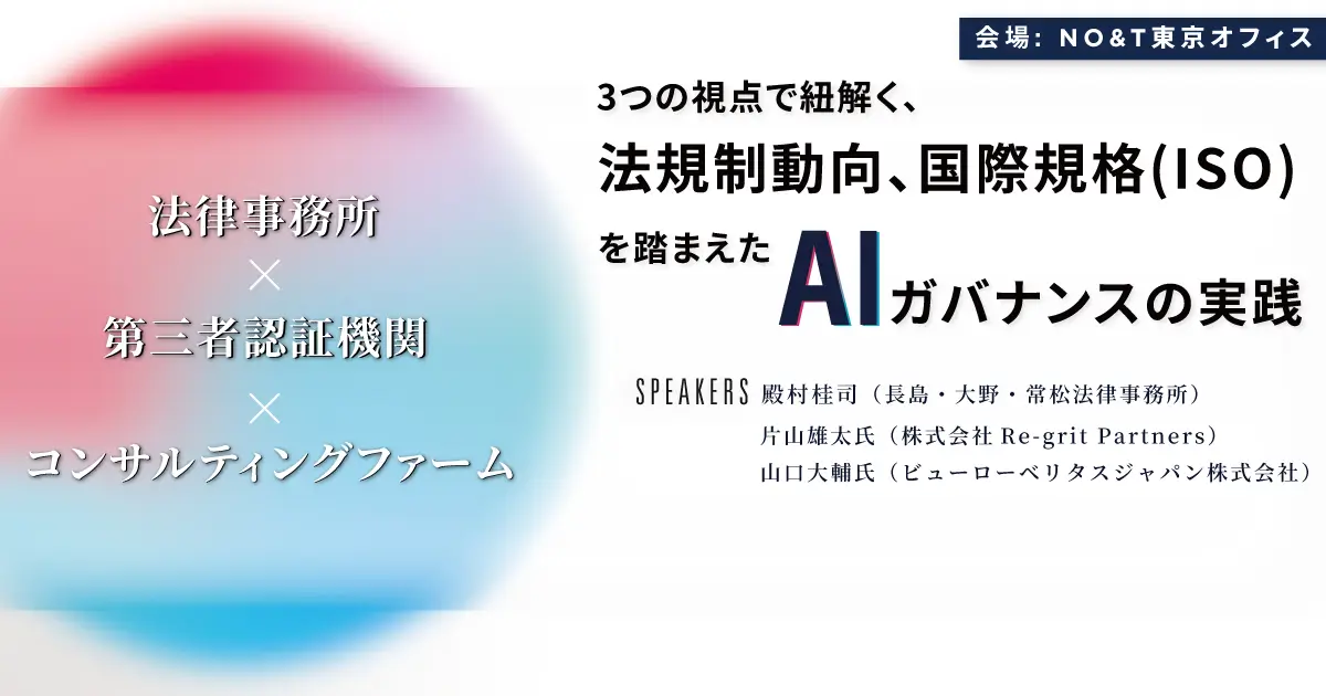 February 6, 2026 (Fri) 15:00 - 17:00[Law Firm x Third Party Certification Body x Consulting Firm] Implementing AI Governance from Three Perspectives: Navigating Regulatory Trends and International Standards (ISO)