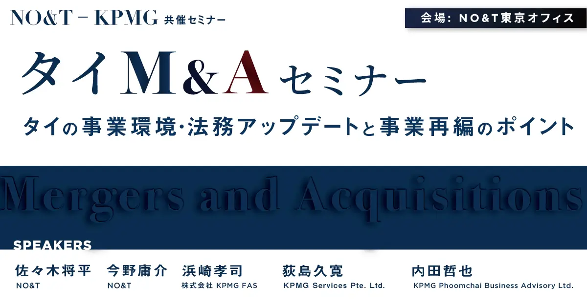 September 30, 2025 (Tue) 14:30 - 17:00Thailand M&A Seminar – Business Environment and Legal Update and Business Reorganization in Thailand