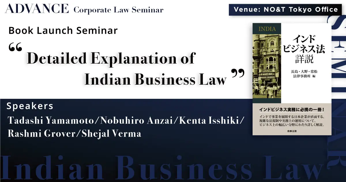 November 7, 2025 (Fri) 14:00 - 17:30Book Launch Seminar “Detailed Explanation of Indian Business Law”