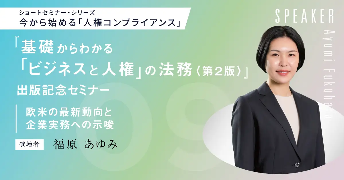 October 15, 2025 (Wed) - April 15, 2026 (Wed) 16:00Publication Commemorative Seminar for “Legal Practice of Business and Human Rights from the Basics” (2nd Edition) – Latest Developments in Europe and the U.S. and Implications for Corporate Practice –