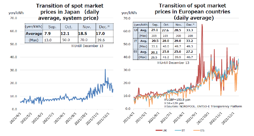 In fiscal 2021, economic recovery from the COVID-19 pandemic, a decrease in upstream investment due to decarbonization, extreme weather conditions and other factors have led to extreme supply and demand pressures and increased fuel prices worldwide. In particular, prices in the wholesale electricity market have increased in Europe in response to rising natural gas prices. In the United Kingdom, 14 out of approximately 50 minor energy suppliers have collapsed and the situation continues to be unstable※3.