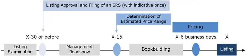In response to such concern, in 2023, the Cabinet Office Order on Disclosure of Corporate Affairs and other regulations were amended in order to shorten the period from the listing approval date to the listing date by allowing the issuer to file an SRS prior to the listing approval date. Specifically, the amended regulations provide that, if an SRS is filed prior to the listing date, certain items in the SRS that are tied to the listing approval may be given within a certain range or be given as “undecided”. Therefore, under the “S-1” format, for example, an initially filed SRS does not need to include the indicative price, the number of shares to be sold or a specific offering timetable.