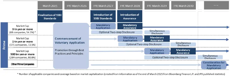 In accordance with the roadmap, the timings for the implementation of the SSBJ Standards and third-party assurance for companies subject to these standards are as follows: