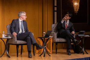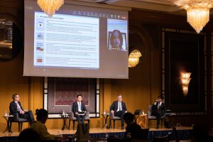 The event featured a panel discussion held by NO&T on “Economic Security and Foreign Investment Control.” Axel Kuhlmann moderated the discussion and Makoto Ohnuma as well as Haseru Roku were panelists along with Mr. Jan D. Bonhage from Hengeler Muller. Mayuko Tsujimoto joined the session on-line from New York. The panel discussion concluded with a Q&A session with the audience.