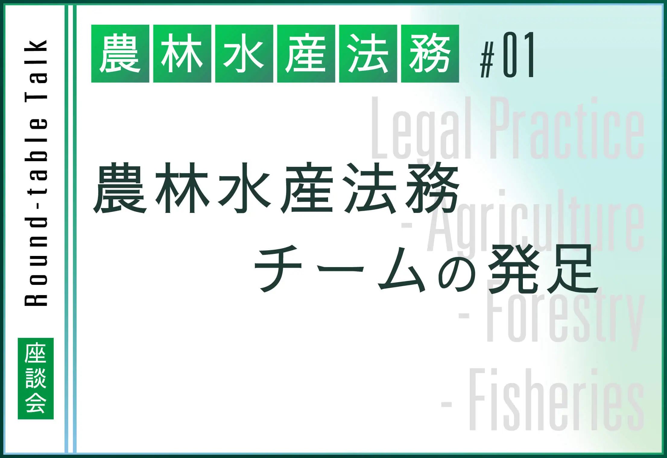本ウェブサイトにて、今後、農林水産法務に関する座談会の内容を連載でお届けいたします。第1回は、総論としてチーム発足の経緯とカバレッジをご紹介いたします。