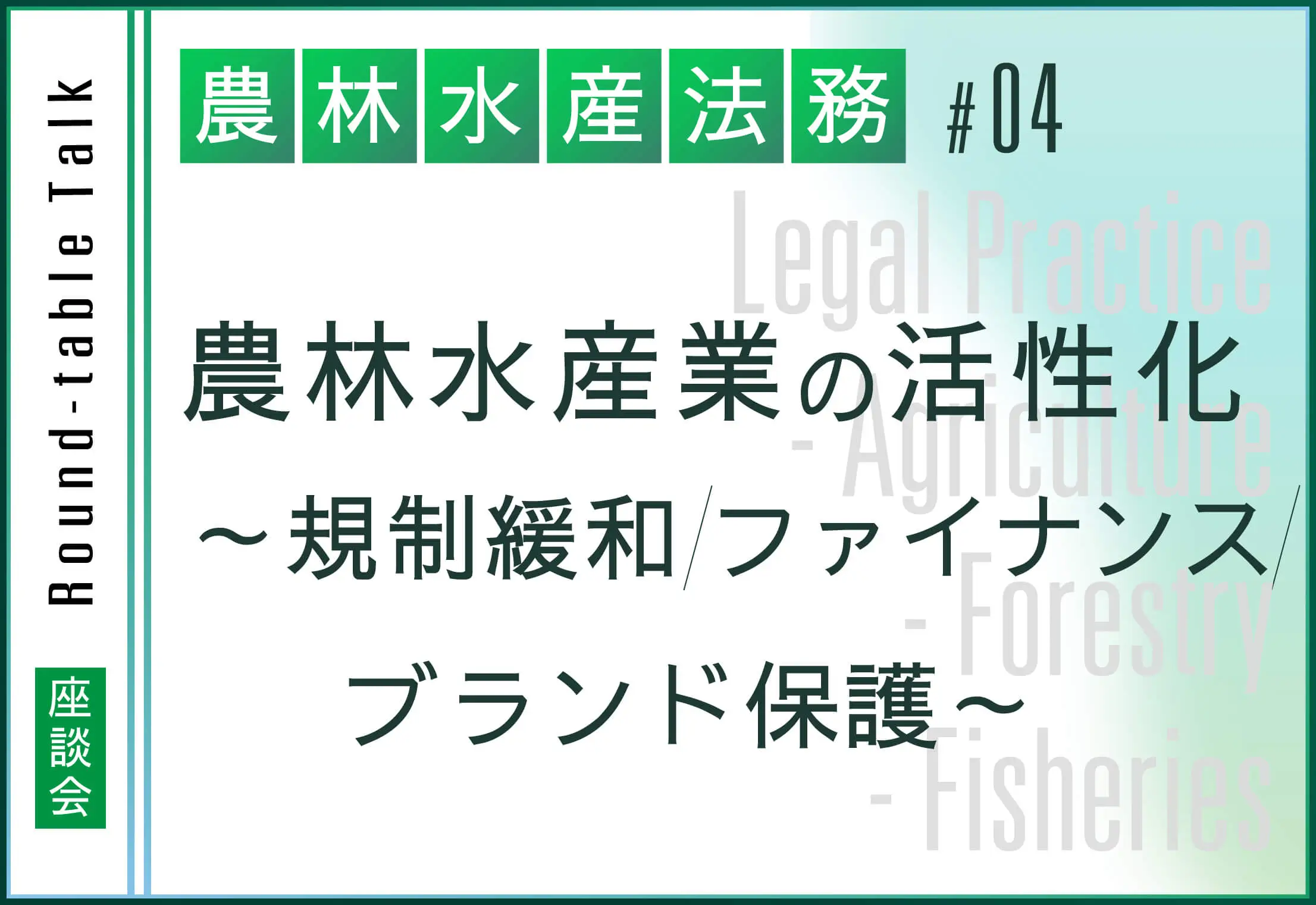 今回は、農林水産業の活性化というテーマで、主にこれまで行われてきた規制緩和の流れ、ファイナンスの観点からみた農林水産業、それから、海外輸出も視野に入れたブランドの保護という点について議論したいと思います。