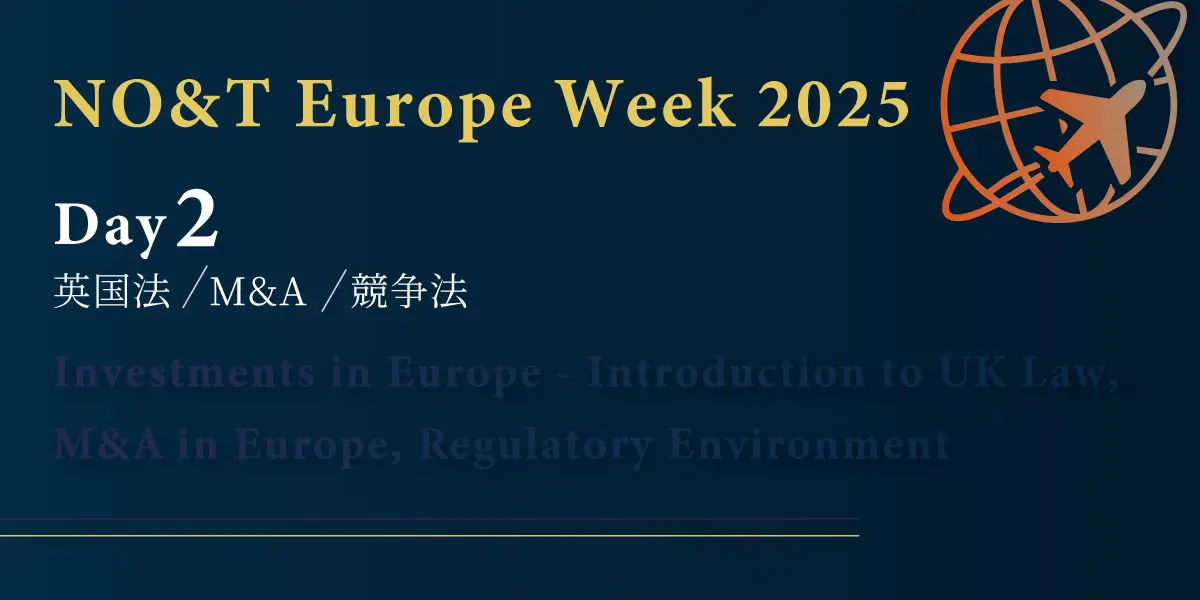 2025年5月21日(水) 15:00~18:00NO&T Europe Week – Day2: Investments in Europe – Introduction to UK Law, M&A in Europe, Regulatory Environment