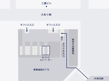 JPタワー地上1階のオフィスエントランスよりお入りください。