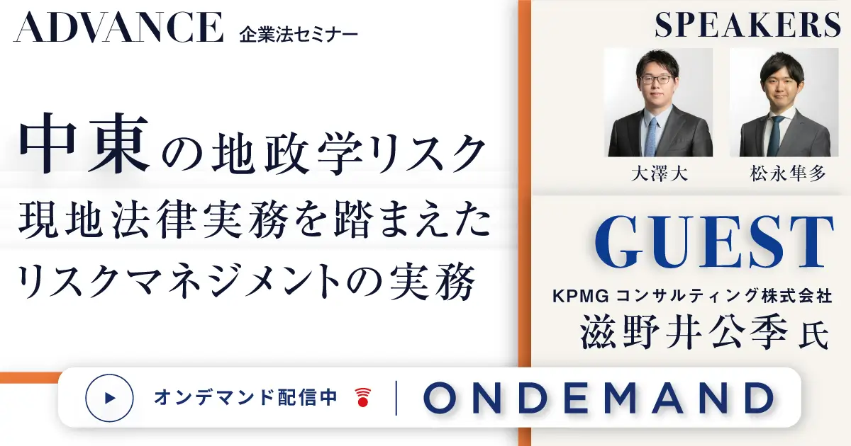2025年9月29日(月) ~2025年12月29日(月) 16:00中東の地政学リスク・現地法律実務を踏まえたリスクマネジメントの実務