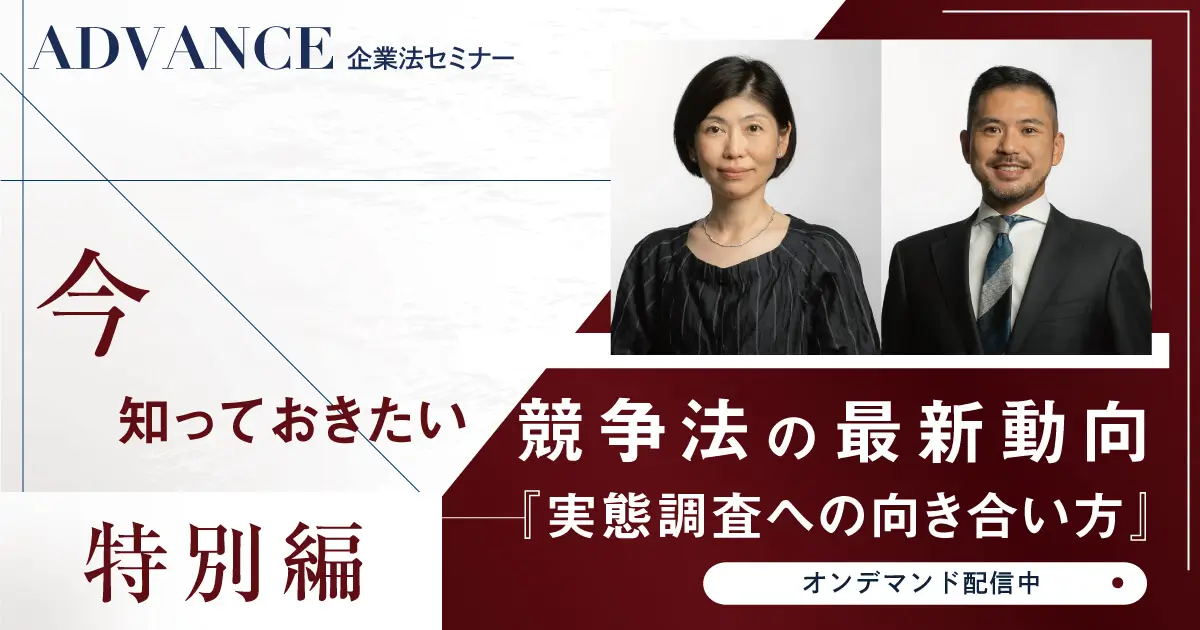 2023年12月7日(木) ~2025年12月6日(土) 16:00今知っておきたい競争法の最新動向 特別編「実態調査への向き合い方」