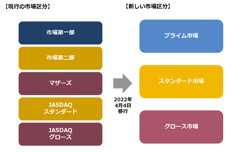 2022年4月4日付の東証の新市場区分への移行に向けて、各東証上場企業は2021年12月末までに市場区分の選択を行い、選択先の市場区分の上場維持基準を充たさない会社は「上場維持基準の適合に向けた計画」を提出・開示しました。これを受け2022年1月11日に東証は上場企業の新市場区分の選択結果の一覧を公表しましたが※2、これによれば、プライム市場を選択した企業は1,841社、スタンダード市場を選択した企業は1,477社、グロース市場を選択した企業は459社となりました。