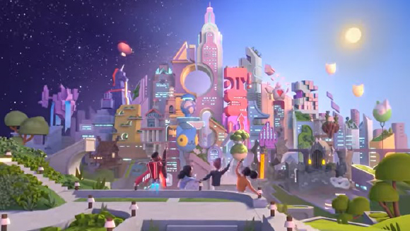 「メタバース空間」といっても様々なものがありますが、空間構築にあたっての法的課題を検討する観点からは、2つのタイプに分類することができます。例えば「都市」に関するメタバース空間で言えば、現実に存在する都市空間を再現するメタバース空間と、現実には存在しない架空の都市空間を制作するメタバース空間の2つに分類されます。前者の代表例としては、KDDI株式会社が企画する「バーチャル渋谷」(図1)が、後者の代表例としては、Meta Platforms, Inc.が提供する「Horizon Worlds」(図2)が挙げられます。
