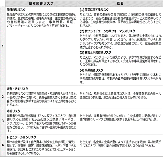 出典:The World Economic Forum and PwC「Nature Risk Rising: Why the Crisis Engulfing Nature Matters for Business and the Economy」(2020年)20頁以下をもとに当職らにて作成
