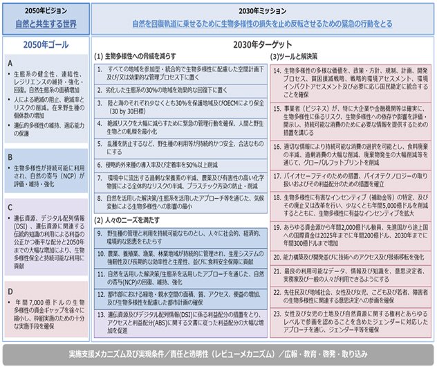 以下、新枠組の内容を引用又は参照する場合、環境省のウェブサイトで公表されている「昆明・モントリオール生物多様性枠組(仮訳)」(2023年1月23日時点)の内容に依拠いたします。