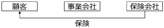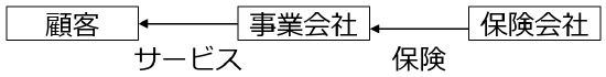 そこで、事業会社が顧客から一旦リスクを引き受けた上で保険会社に移転するのではなく、保険会社が顧客から直接リスクを引き受けることが考えられます(下図)。顧客から見れば、事業会社のサービスに加入するのではなく、保険会社の保険に加入する形になります。この場合、顧客が個別に保険契約を締結することも考えられますが、事業会社が保険契約者となり、顧客を被保険者とする保険契約を締結することも考えられます。これがサービスの「保険化」です(ここでそう呼んでいるだけであり、一般的な呼称ではありません)。保険業該当性が問題になるようなサービスが、保険会社の提供する保険に置き換わるため、無免許営業のおそれはなくなります。