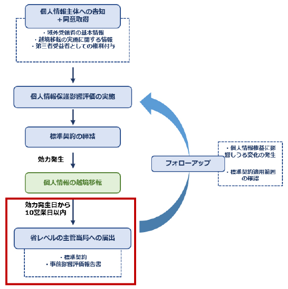 標準契約ガイドラインでは、標準契約の締結による個人情報の越境移転に必要な届出手続(以下、「本届出」という。)についてタイムラインを含め明確化された上で、実務において関心が高まっていた個人情報保護影響評価報告書等の届出書類の様式も併せて公表された。