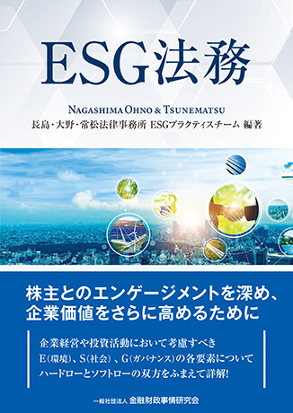 長島・大野・常松法律事務所のESGプラクティスチームの弁護士が執筆した『ESG法務』が刊行されました。同書は、企業活動において考慮すべきE(環境)、S(社会)、G(ガバナンス)の各要素について、法務の観点から詳しく解説した一冊となっており、ESGと企業法務が交錯する分野を網羅した本邦初の書籍であると思っております。ESGと法務のかかわりに関心がある方々の参考にしていただければ幸甚です。