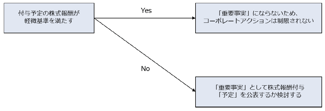 本改正後、株式報酬の実施を検討している会社については、まず、検討している株式報酬が上記(1)①又は②の軽微基準を満たすかどうかを確認することになると思われる。
