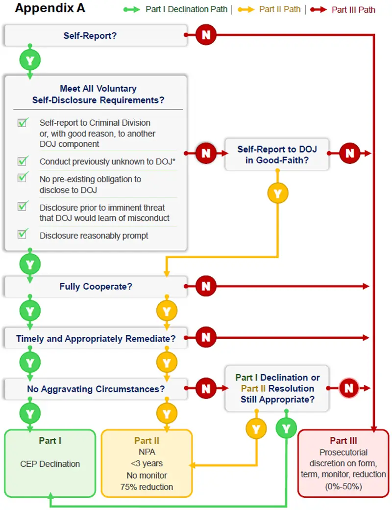 (DOJ Justice Manual. 9-47.120 – Criminal Division Corporate Enforcement and Voluntary Self-Disclosure Policy. Appendix A※9 )