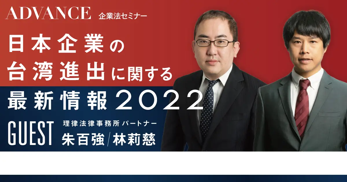 本セミナーでは、台湾最大の法律事務所である理律法律事務所から、海外からの台湾向け投資に精通するパートナー2名(朱弁護士及び林弁護士)を招き、最新の台湾向け投資規制、台湾における会社法制その他コンプライアンス等の面において把握しておくべき規制の概観、法令の動向・運用、及び実務上問題になりやすい点を中心に日本語で解説いたします。また、当事務所の弁護士との間で、実例を交え、日本の法令及び実務感覚と異なる留意点等に関する議論を通じて、台湾法務に興味のある企業の皆様に有益な情報を提供いたします。