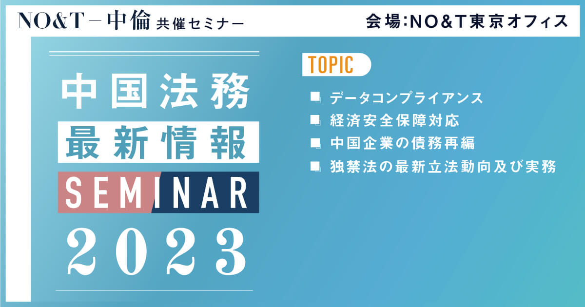 今回、長島・大野・常松法律事務所と中倫律師事務所の弁護士が東京に集まり、3年半ぶりにライブ会場で解説します。基本的な法制の整備が完了し法執行強化が予想されるデータ・セキュリティ法制、米中対立のあおりを受け戦略的な検討が必要な経済安全保障、不安定な中国の経済状況において増加傾向にある債務再編への対応、改正中国独禁法の施行状況など、日本企業の関心の高い内容にフォーカスします。