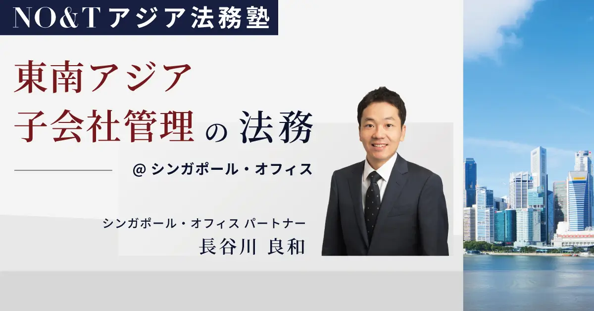 コロナ禍の渡航制限が解消され、東南アジアにおいても子会社管理の観点からの現地往査等が回復傾向にあります。同地域の言語、法制度、法実務や文化面の差異や多様性も相俟って、法務面での子会社管理の円滑な実現に苦労する事例は多々見られ、多くの企業にとってグループガバナンスやコンプライアンスの浸透は大きな課題です。本セミナーでは、東南アジアにおけるグループガバナンスやコンプライアンスの実践に係る苦労事例や予防・対処例等も含めて紹介し、子会社管理に関わる法務・管理部門担当者や経営者に参考となりそうな実践的な内容を取り上げます。