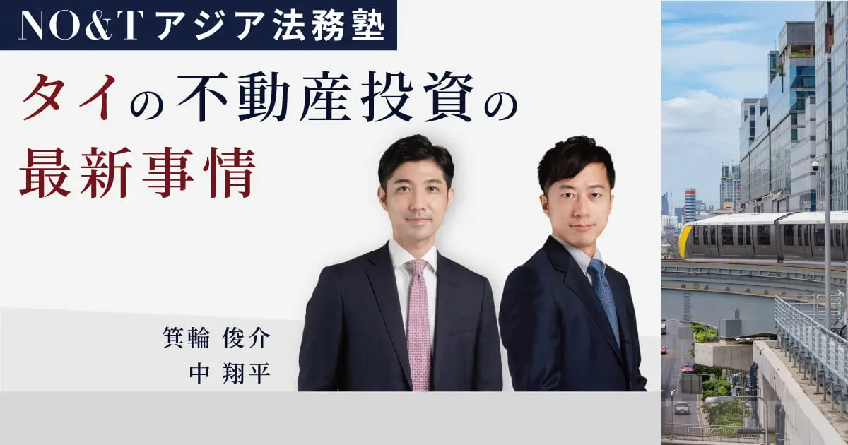 本セミナーでは、タイにおける不動産開発案件を担当されている実務担当者の方々を対象に、タイにて不動産開発を行うにあたって知っておくべき基本的なタイの法制度や、タイにおける不動産案件の実務的な対応の傾向を現地に駐在する日本人弁護士が解説します。(所要時間:約80分)