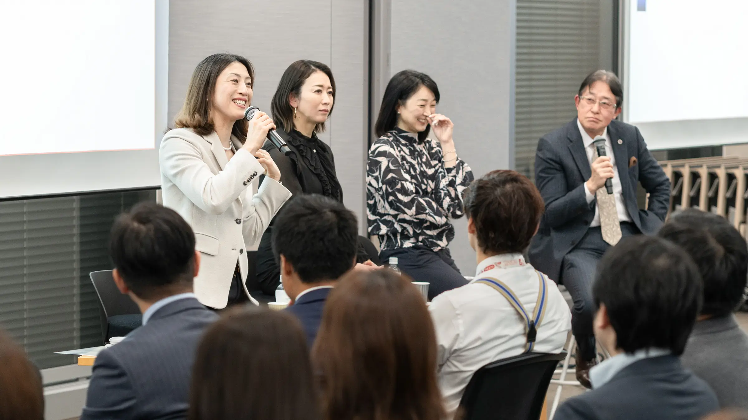 当事務所は、福利厚生の一環として水泳オリンピックメダリストの岩崎恭子氏、田中雅美氏、寺川綾氏の3名をお招きし、「心と体の健康づくりーオリンピックで『勝つ』ことの意義、モチベーション、日常のアドバイス等」をテーマとする所内向け座談会を2026年1月23日、当事務所セミナールームにて開催いたしました。