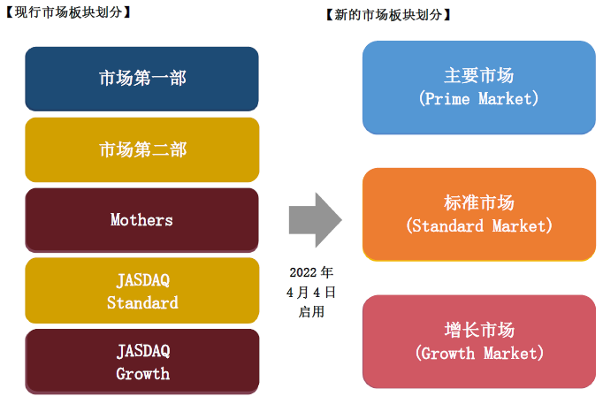 为了使东证在2022年4月4日启用新的市场板块划分,东证的各家上市公司在2021年12月末选择了市场板块,未达到所选择的市场板块的保持上市标准的公司提交并披露了《符合保持上市标准的计划》。因此,东证于2022年1月11日公布了上市公司的新市场板块的选择结果一览表※2,结果显示1,841家公司选择了主要市场(Prime Market),1,477家公司选择了标准市场(Standard Market),459家公司选择了增长市场(Growth Market)。