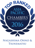 在Chambers Asia-Pacific 2016(Chambers & Partners)的日本分业务领域评价中,本事务所在多个业务领域获得高度评价。在银行和金融、资本市场、反垄断法/反不正当竞争法、公司和M&A、争议解决、保险、房地产、税务八个业务领域中被评为第一级(Band 1),下列律师也在各业务领域获得高度评价。